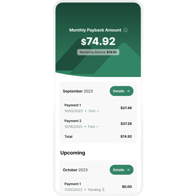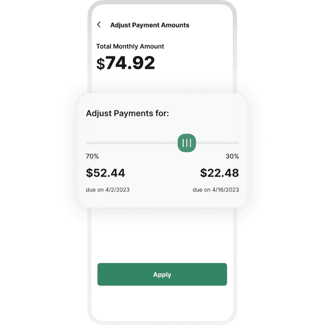 Our flexible repayment schedule gives you options. Take control by choosing the amounts and dates that work for you.